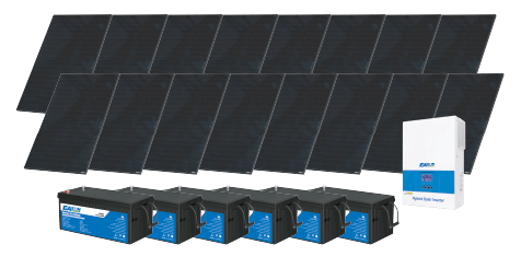 Jedná se o OSTROVNÍ ELEKTRÁRNU složenou z fotovoltaického pole, AC/DC měniče a bateriové úložiště. Výkonostně systém nemá limit a zle ho aplikovat jako jedno fázový nebo třífázový systém. Systém funguje tak, že fotovoltaické pole generuje ze slunečního záření elektrický proud, který se v OFF-GRID měniči převádí ze stejnosměrného napětí na střídavé.